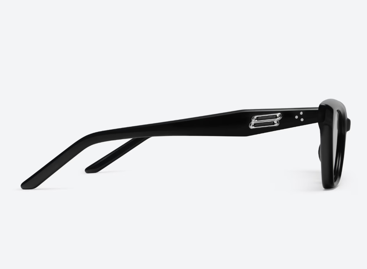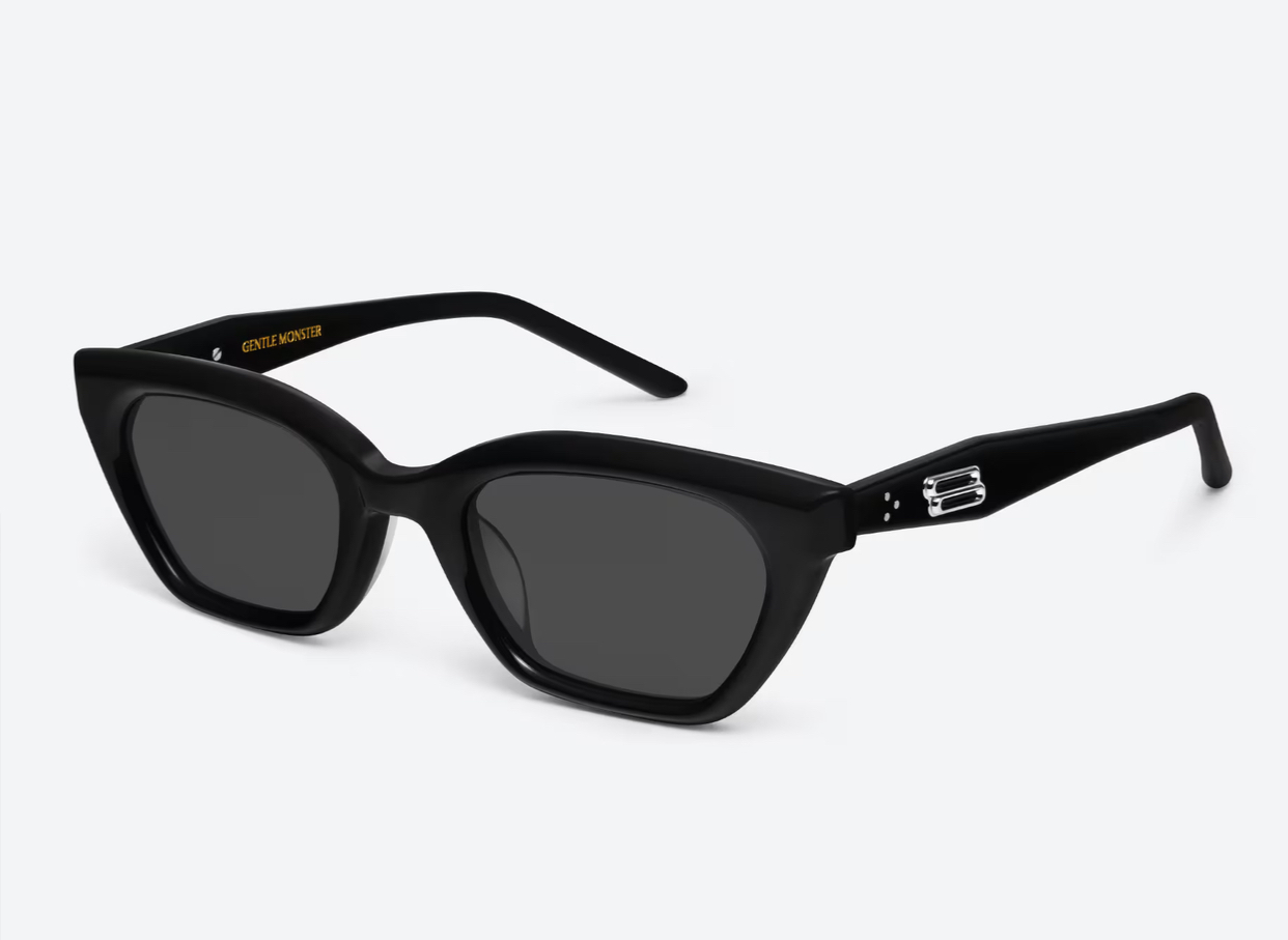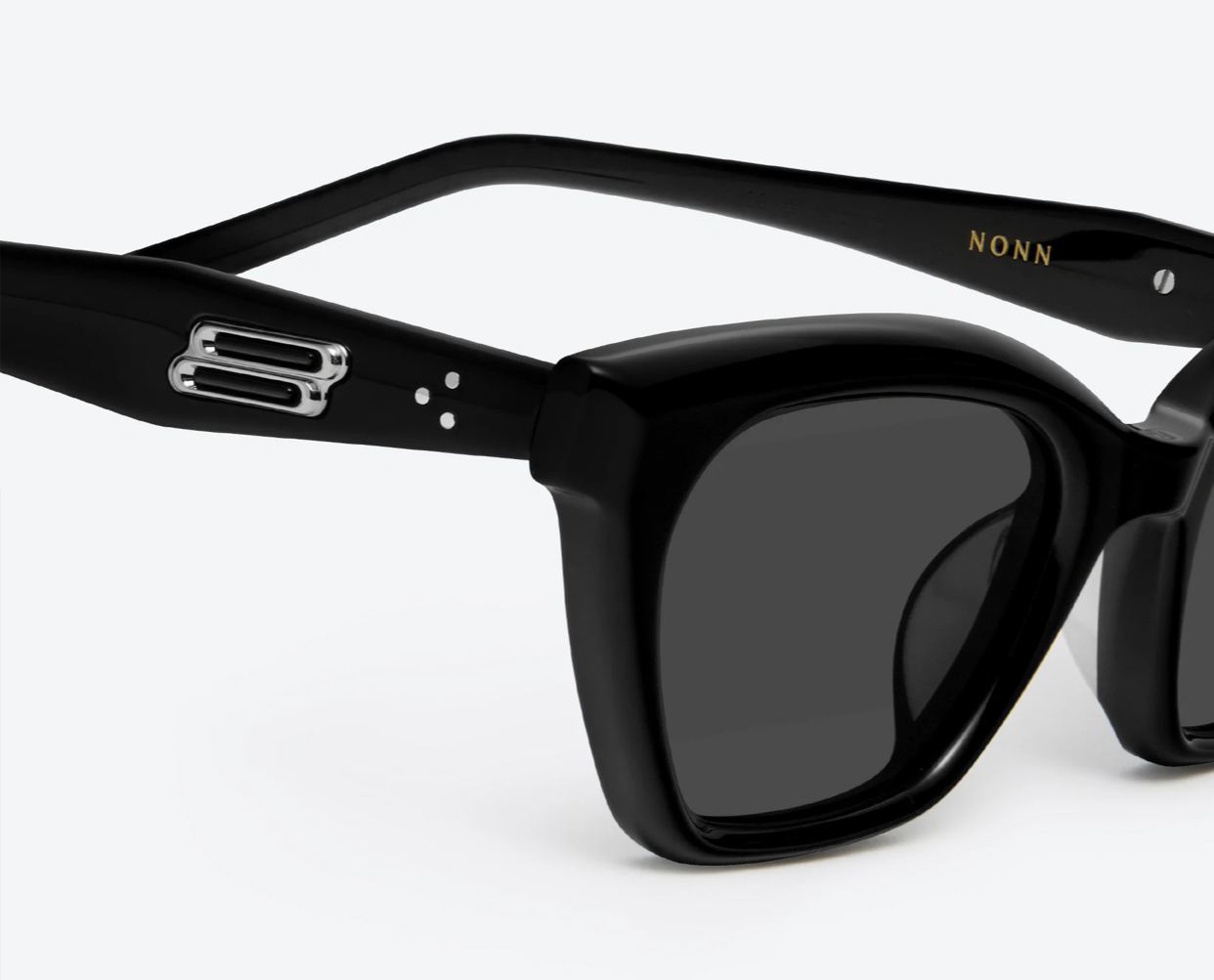 Discover the Nonn 01 sunglasses from Gentle Monster’s 2024 Collection. Enhanced by its straight-line style, this piece's cat-eye shape harmonizes beautifully with its simple black frame. The iconic metal detail on the temples adds a precious touch.