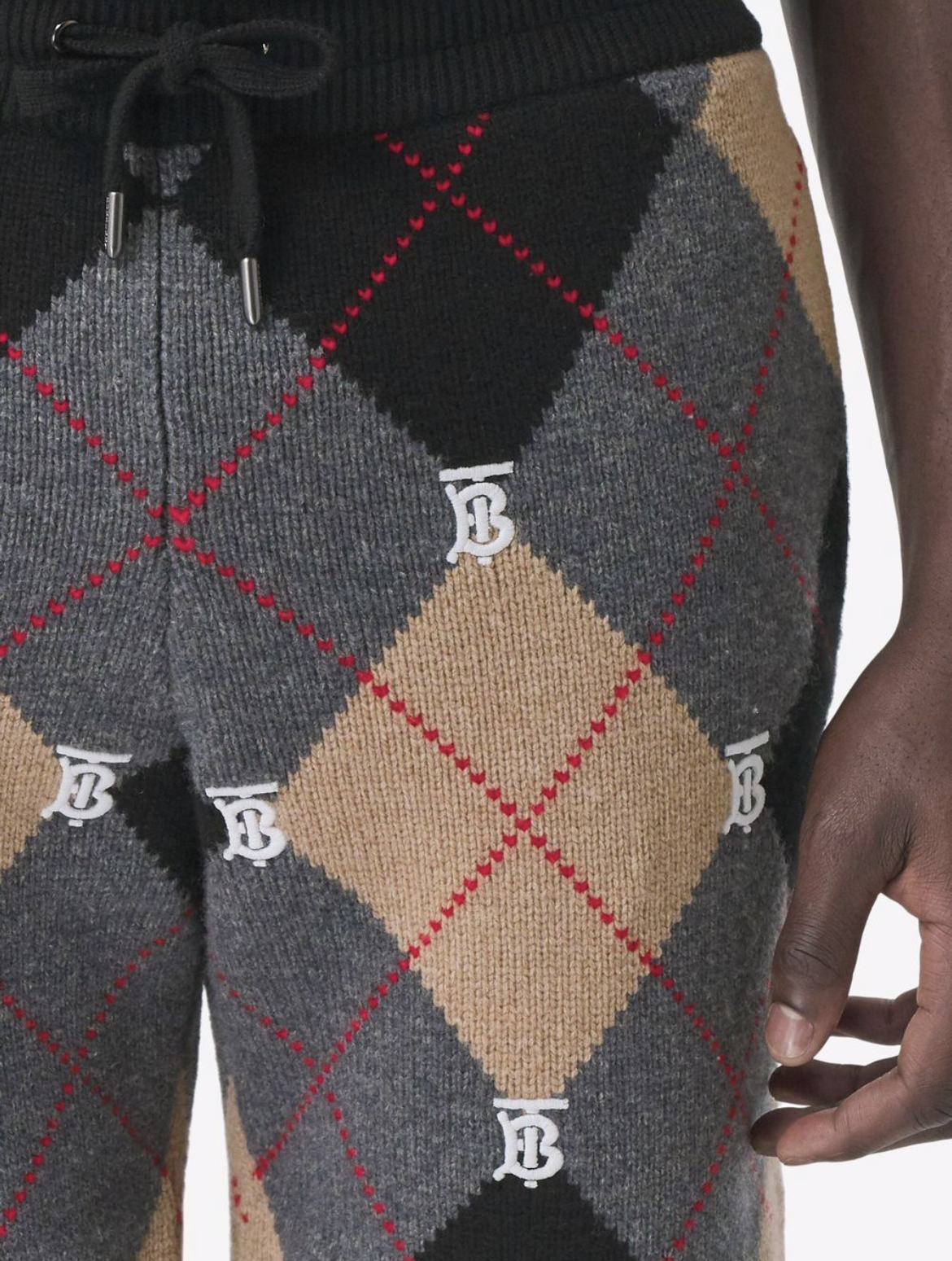 Description:-grey/beige/black-wool cashmere blend-knitted construction -monogram pattern-argyle check pattern -elasticated drawstring waistband, Style id: 8048218 Color: camel