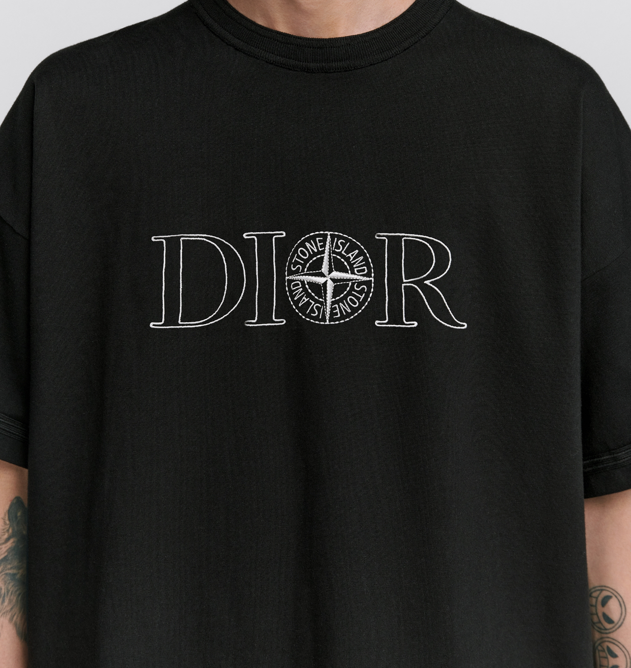 -contrasting DIOR AND STONE ISLAND signature
