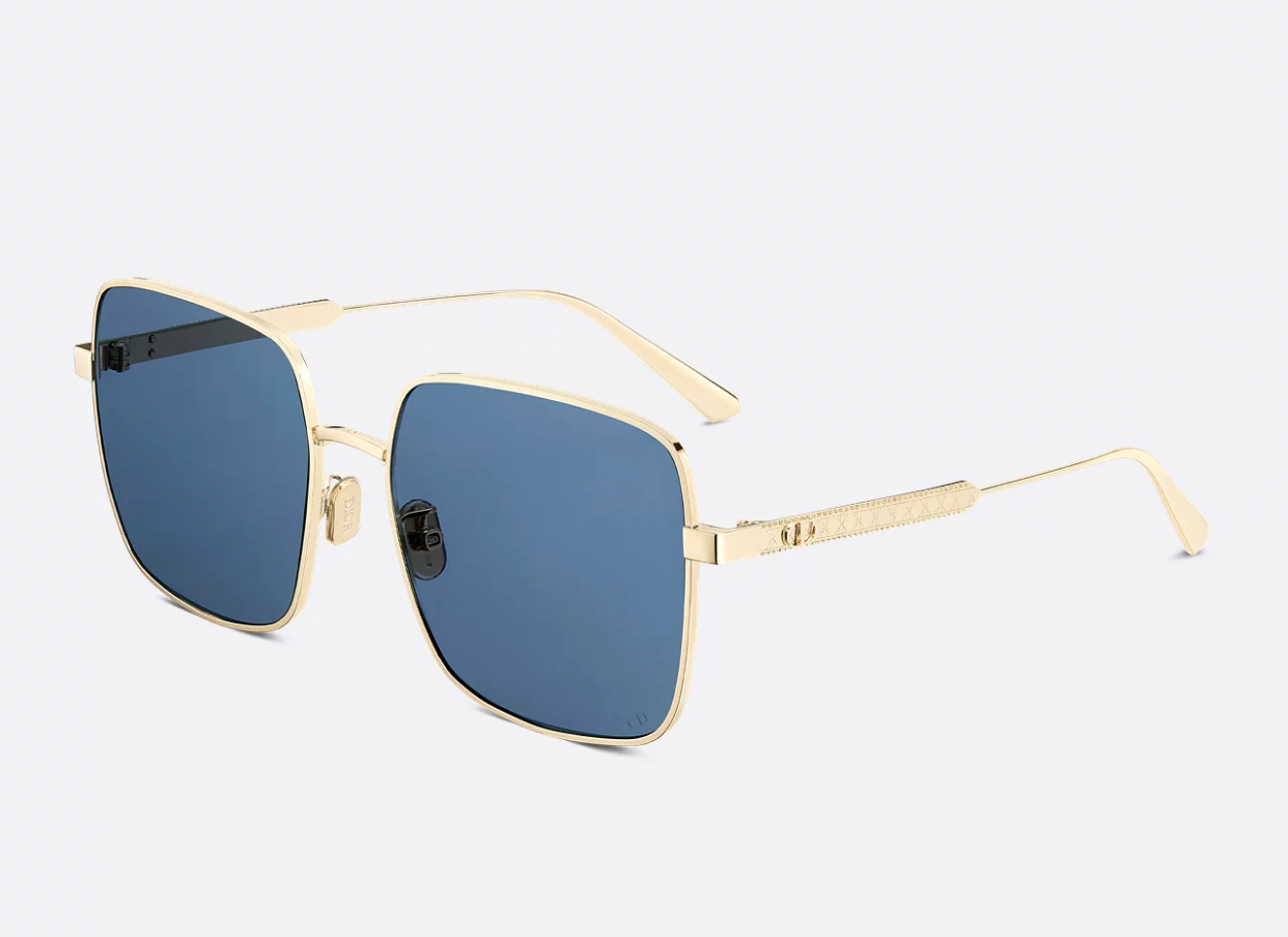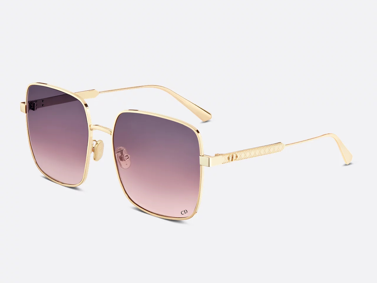 -Engraved Cannage motif and metal CD logo along the temples