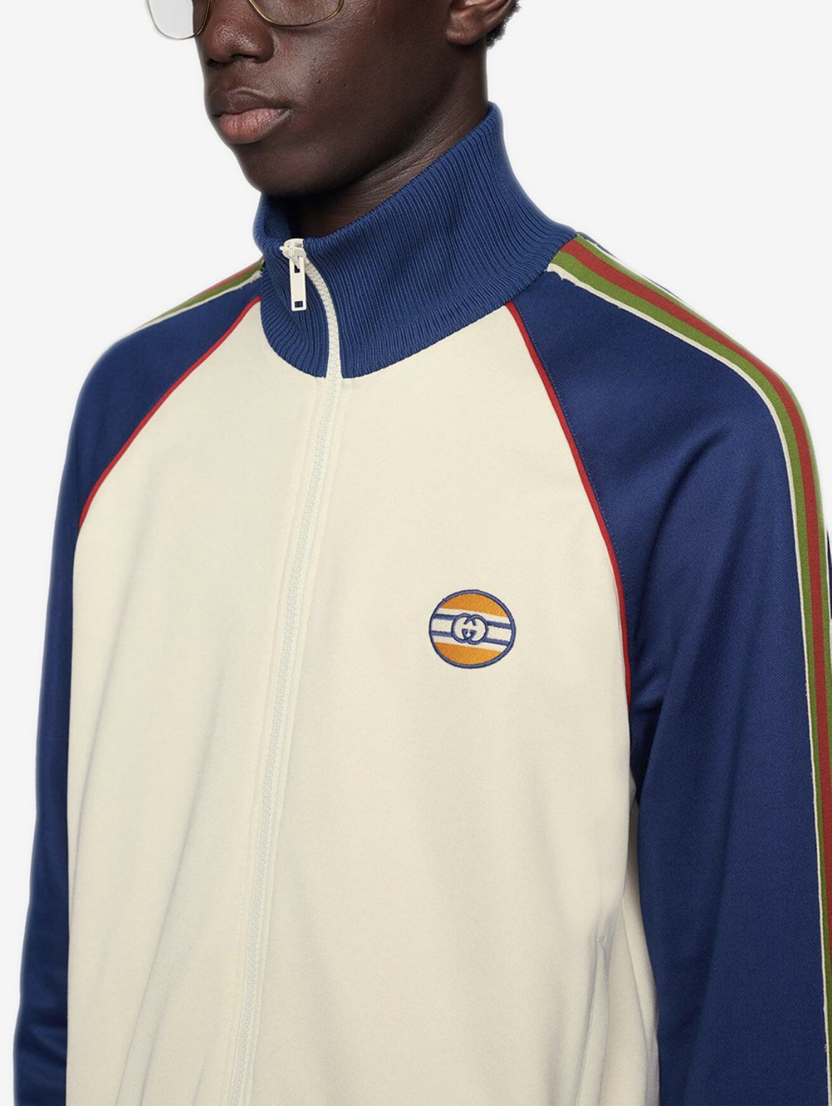 Description:-color block design-signature web stripe trim-logo patch to the front -front zip fastening -elasticated cuffs -elasticated hemStyle id: 645207XJC5O Color: cream/blue