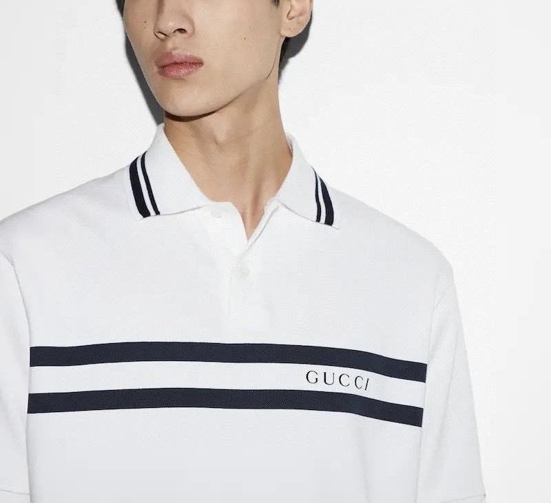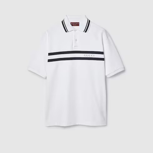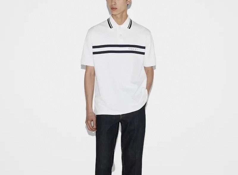 -striped polo collar