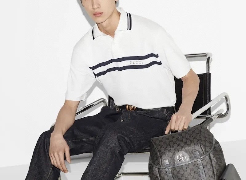 -striped Gucci logo print