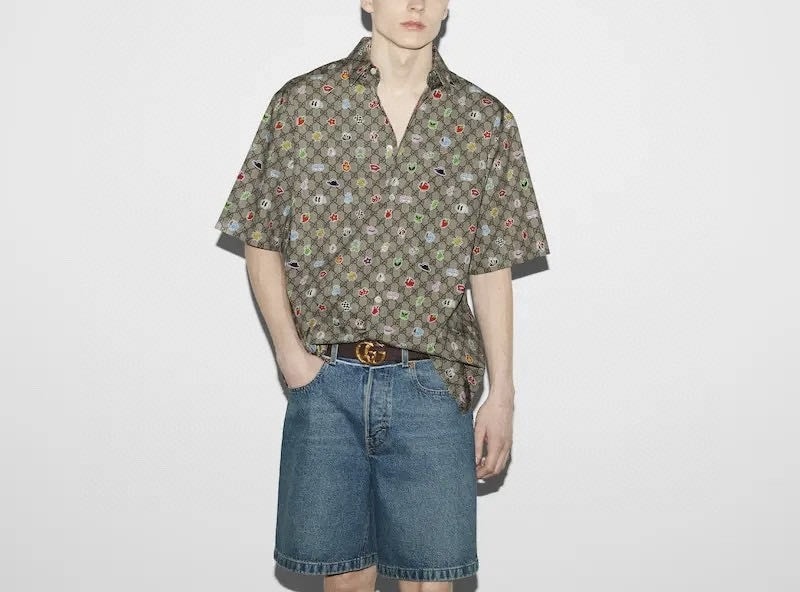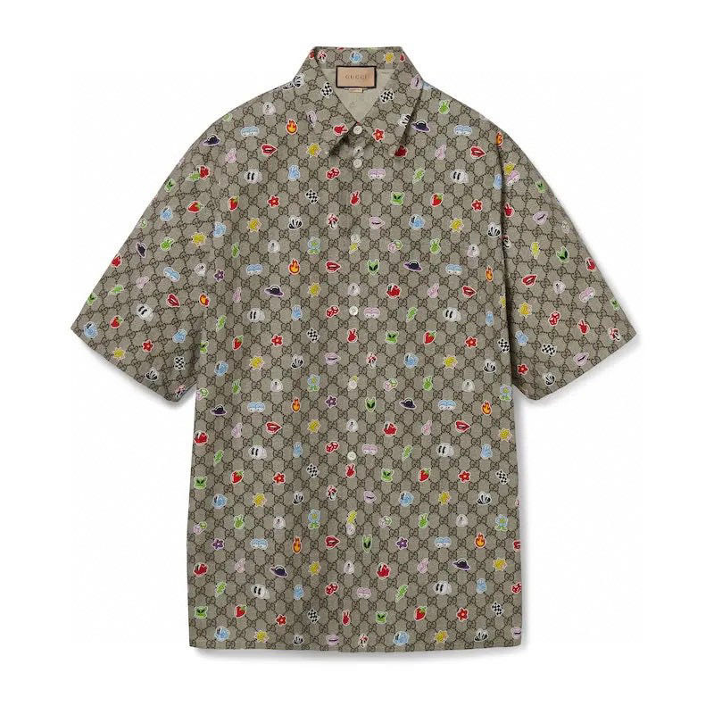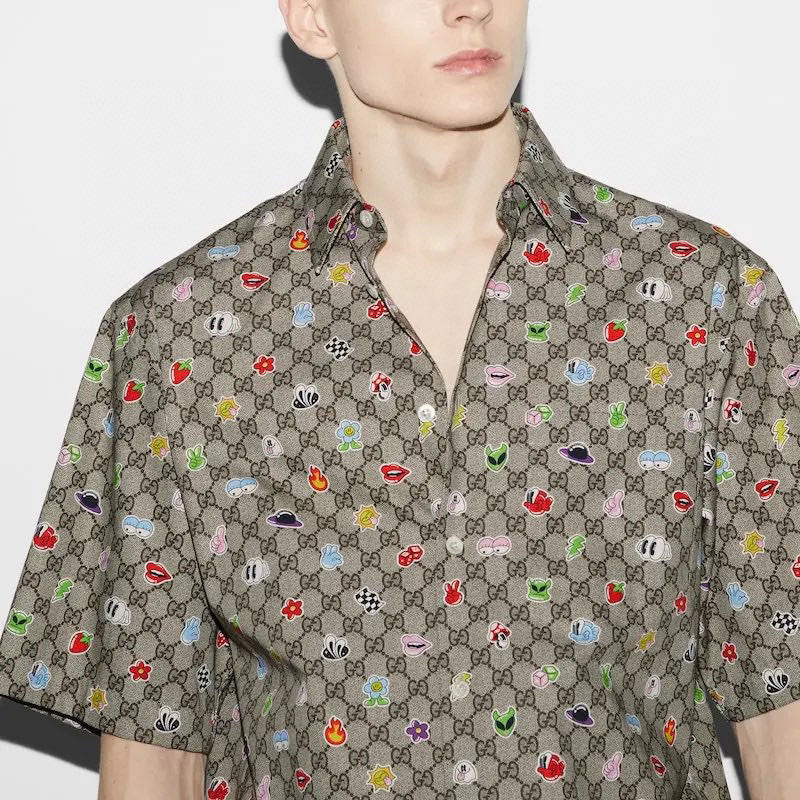 -mini stickers GG print beige and ebony cotton poplin