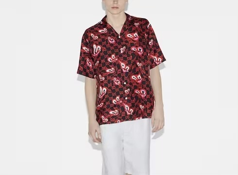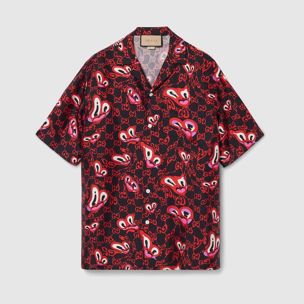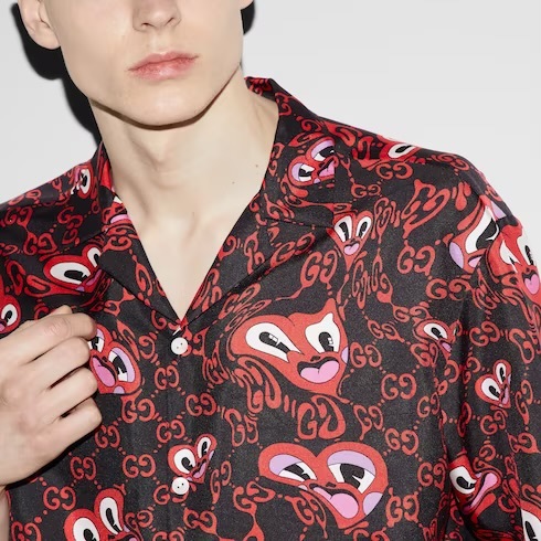 -GG liquid hearts print black and red silk