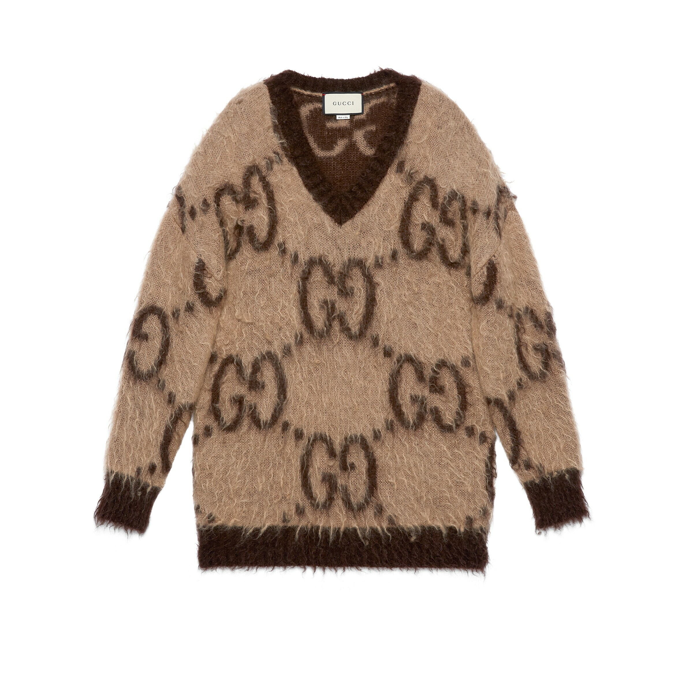 -beige and brown brushed GG jacquard mohair wool blend