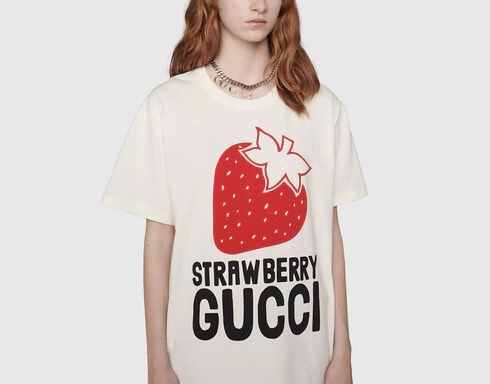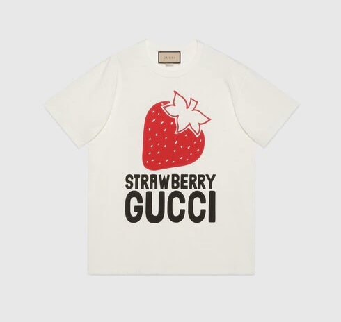 -Off-white heavy cotton jersey with 'Strawberry Gucci' print