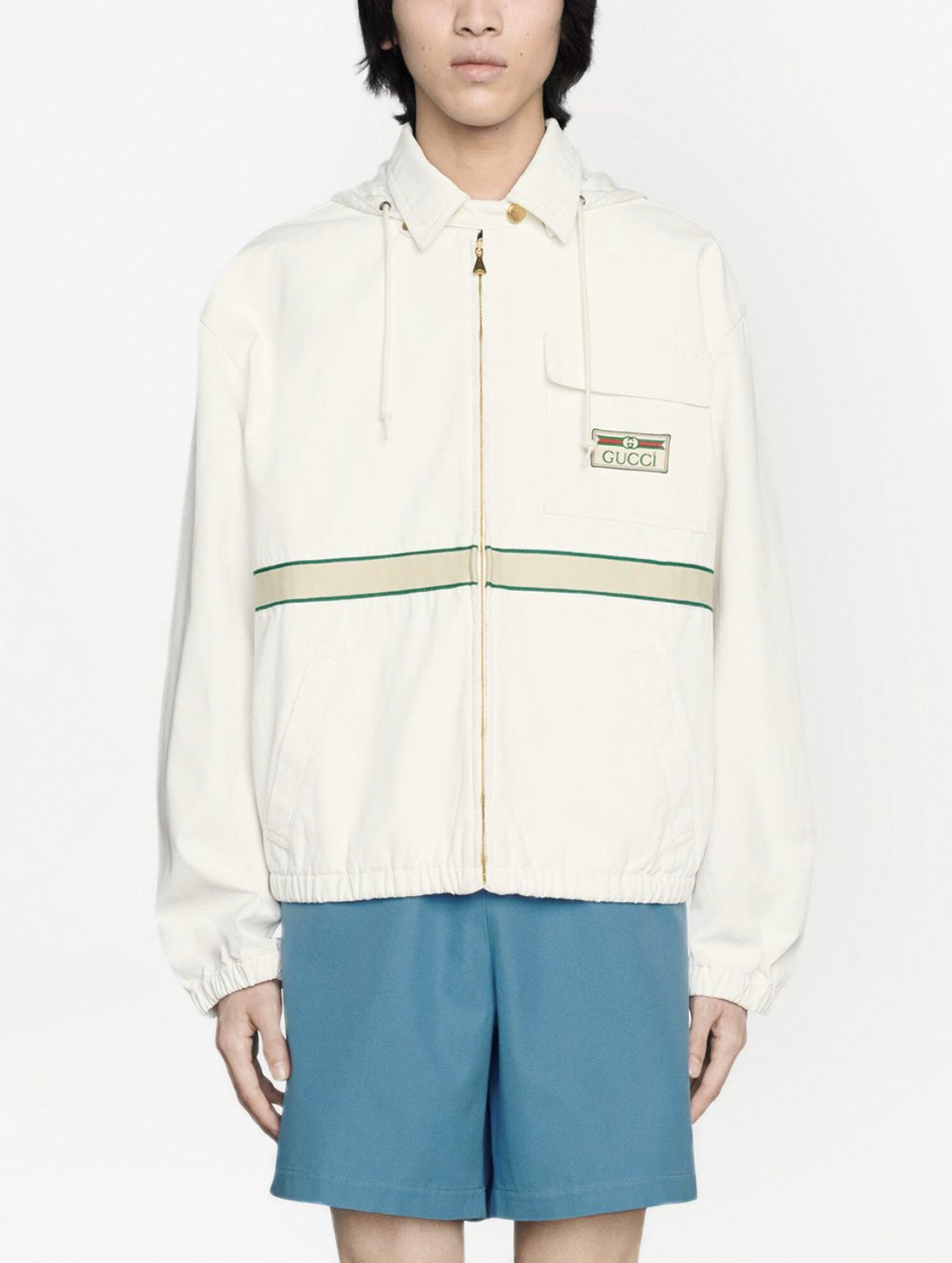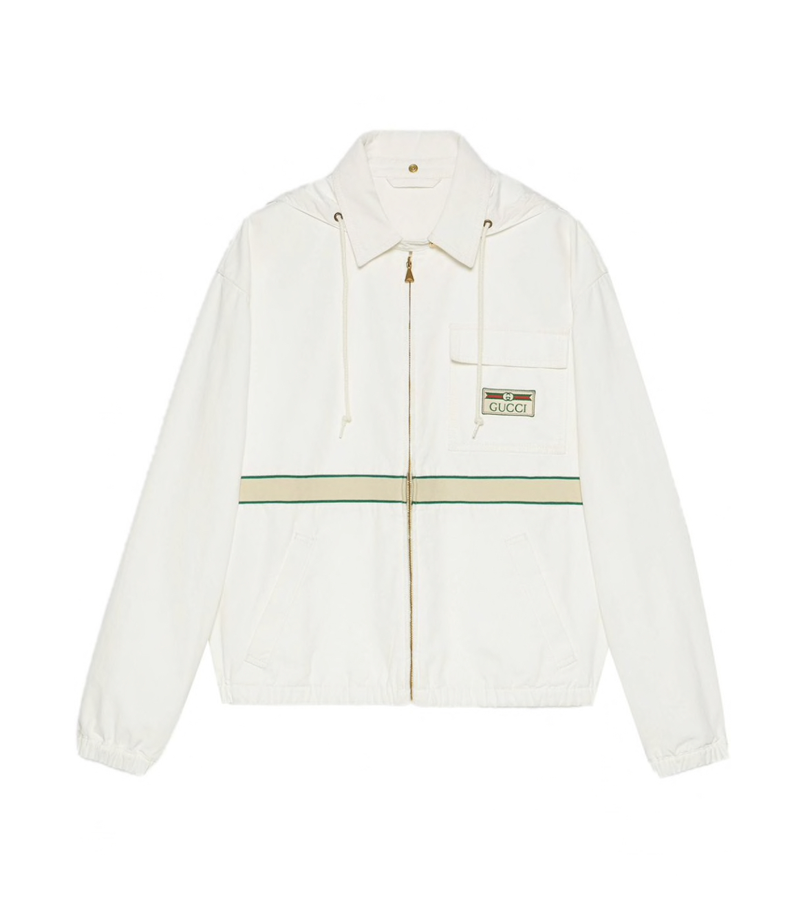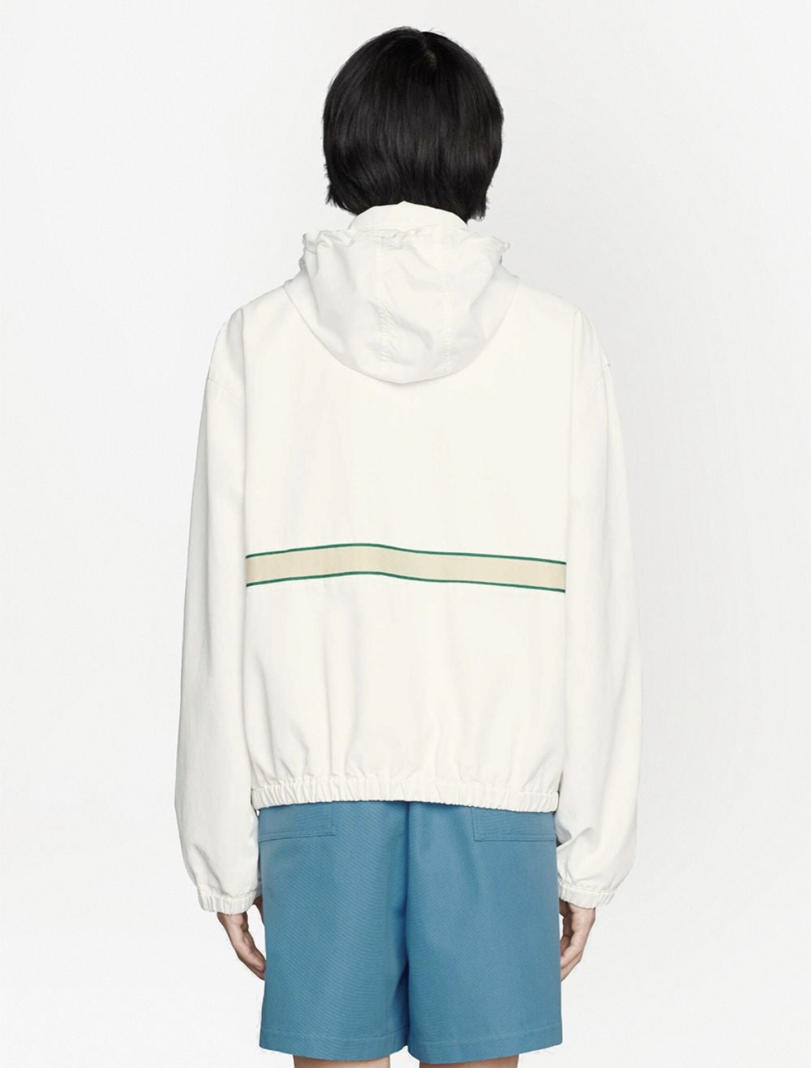 Description:-eco cotton-lightweight construction -logo patch to the front -grosgrain ribbon trim-classic collar-drawstring hood-long sleeves-elasticated hem and cuffs-two side slit pockets Style id: 655708XDBPZ Color: cream
