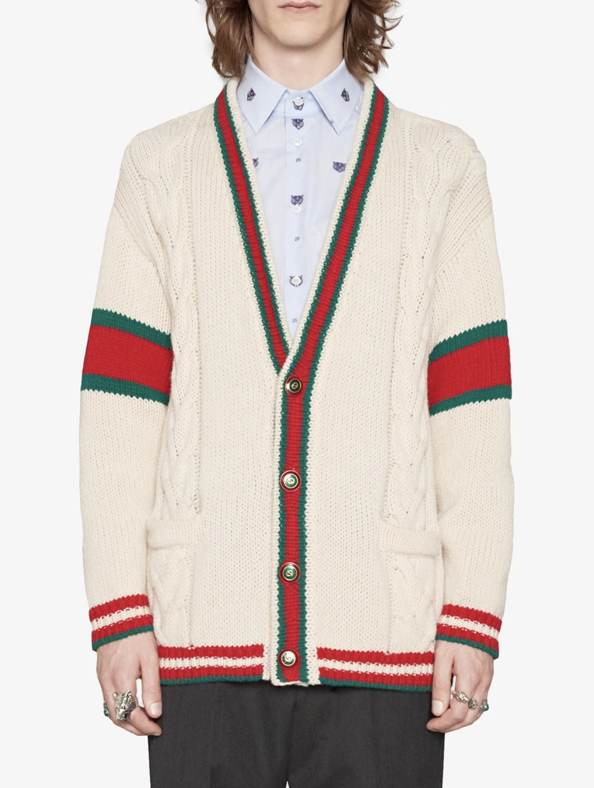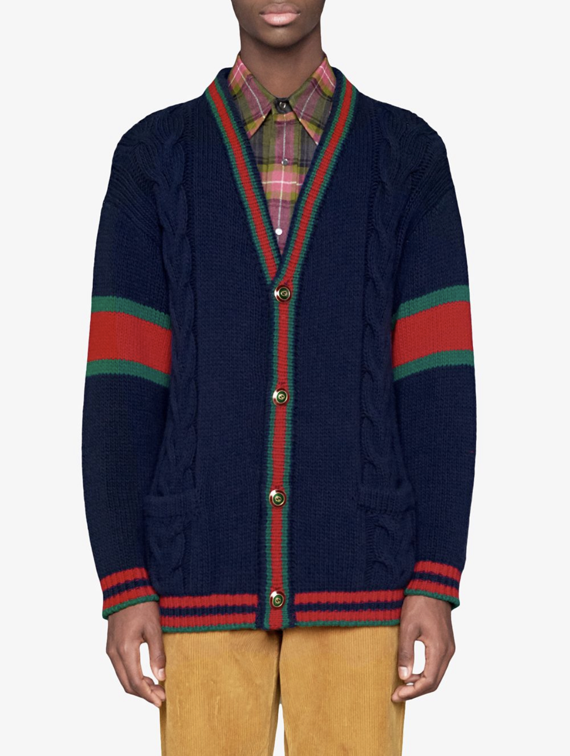 -chunky knit with green and red Web detail