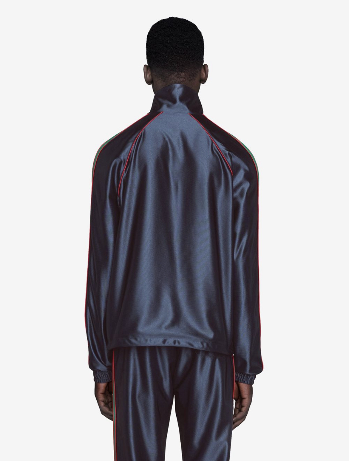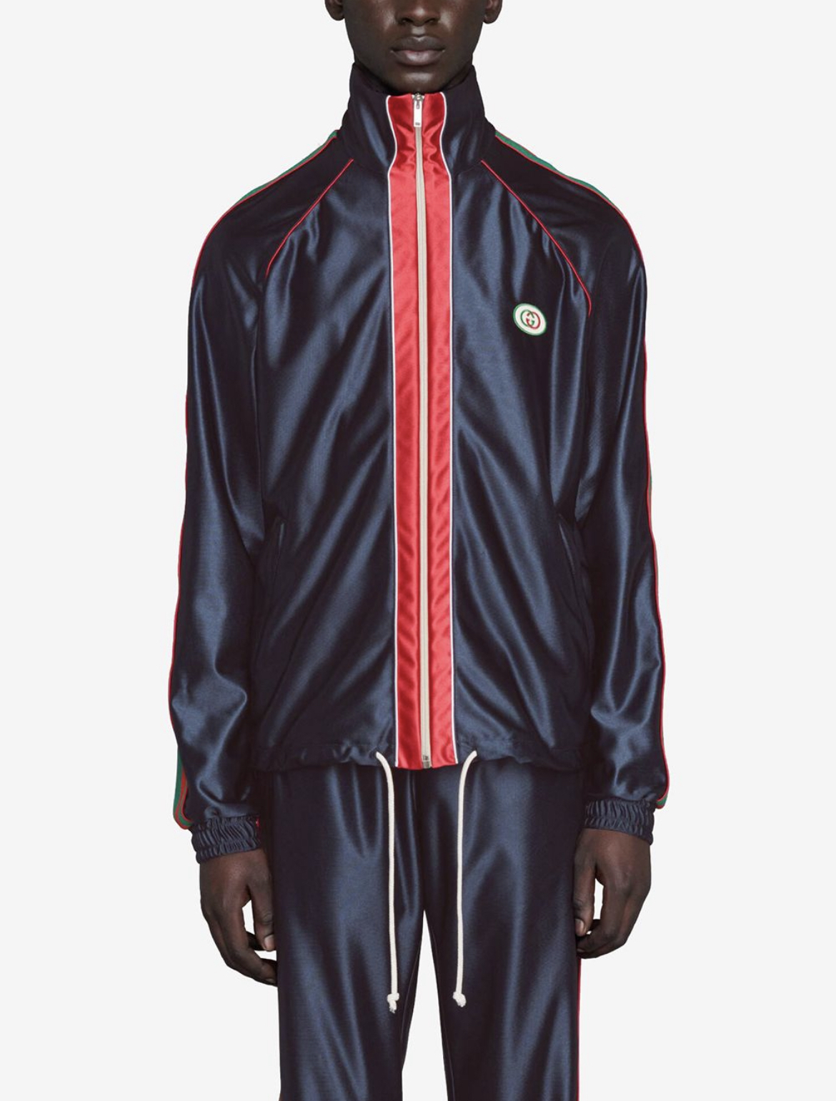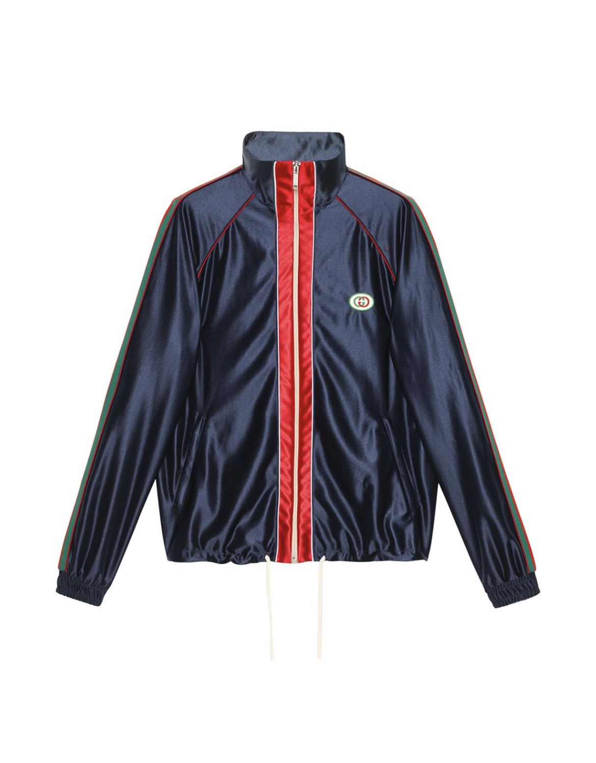 Description: -signature web detail-embroidered logo-funnel neck-long sleeves -front zip fastening -drawstring waist-two side slit pockets Style id: 655341XJDF1 Color: navy/red