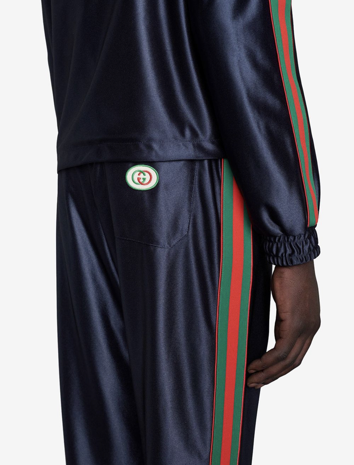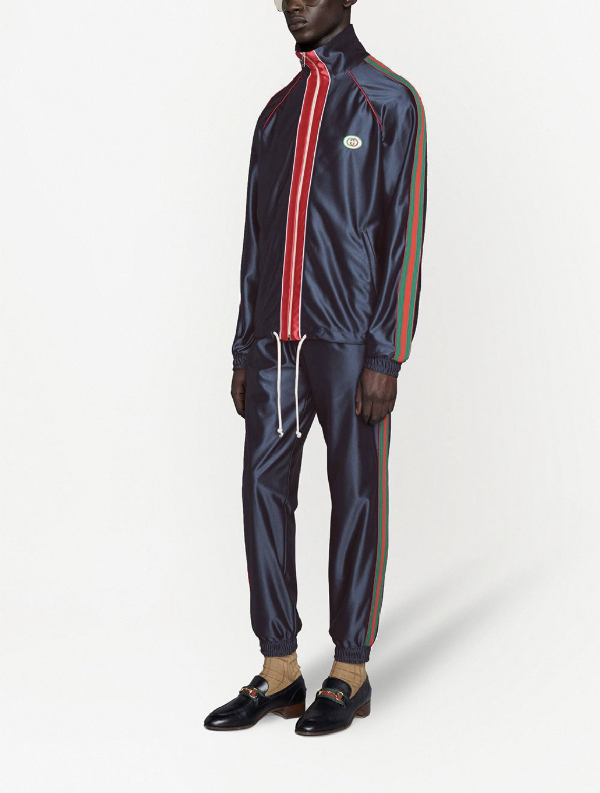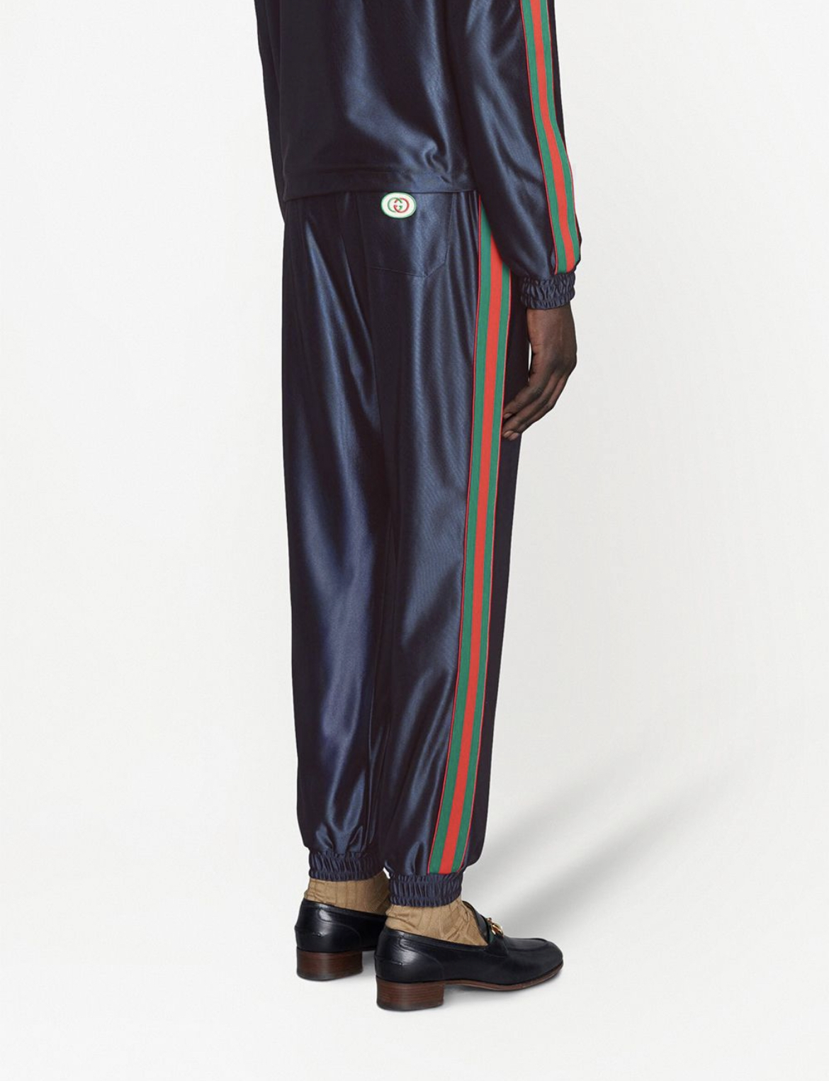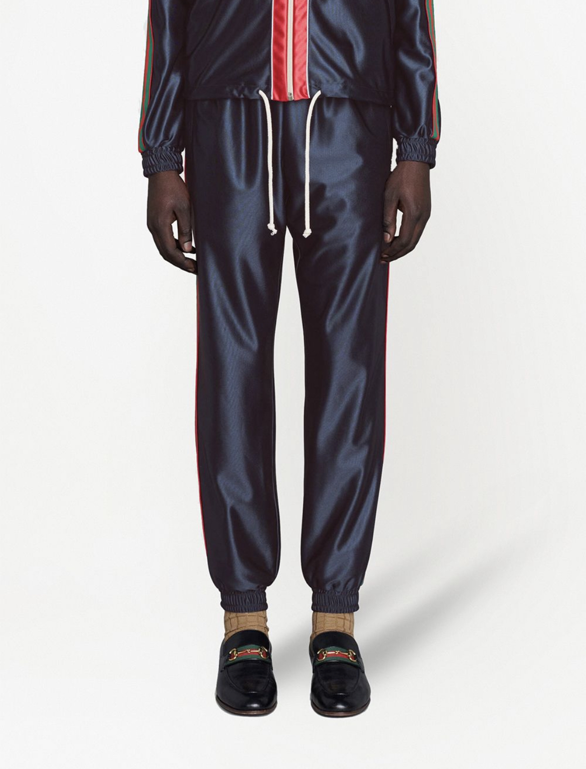 Description:-signature web stripe trim-embroidered logo-drawstring fastening waist -tapered leg ,Style id: 655343XJDF1 Color: blue