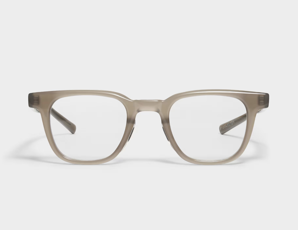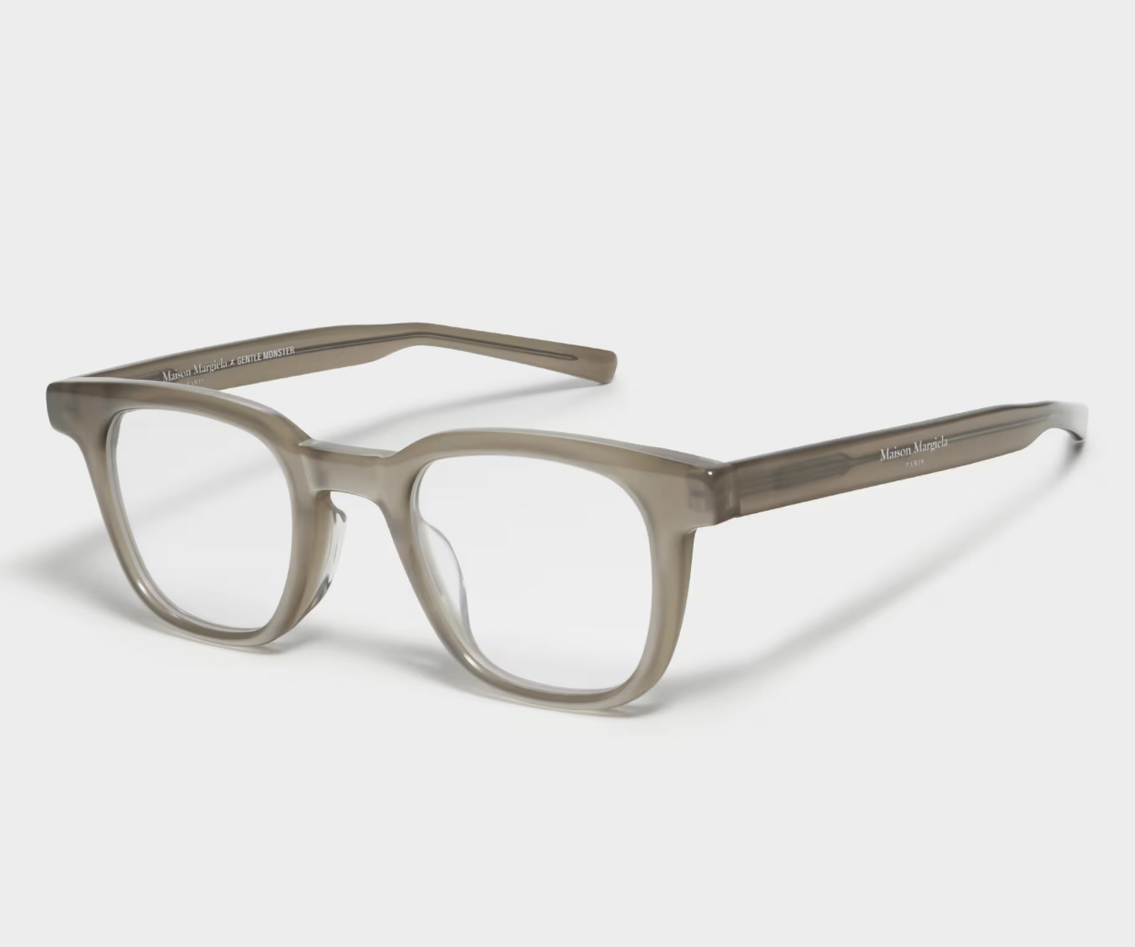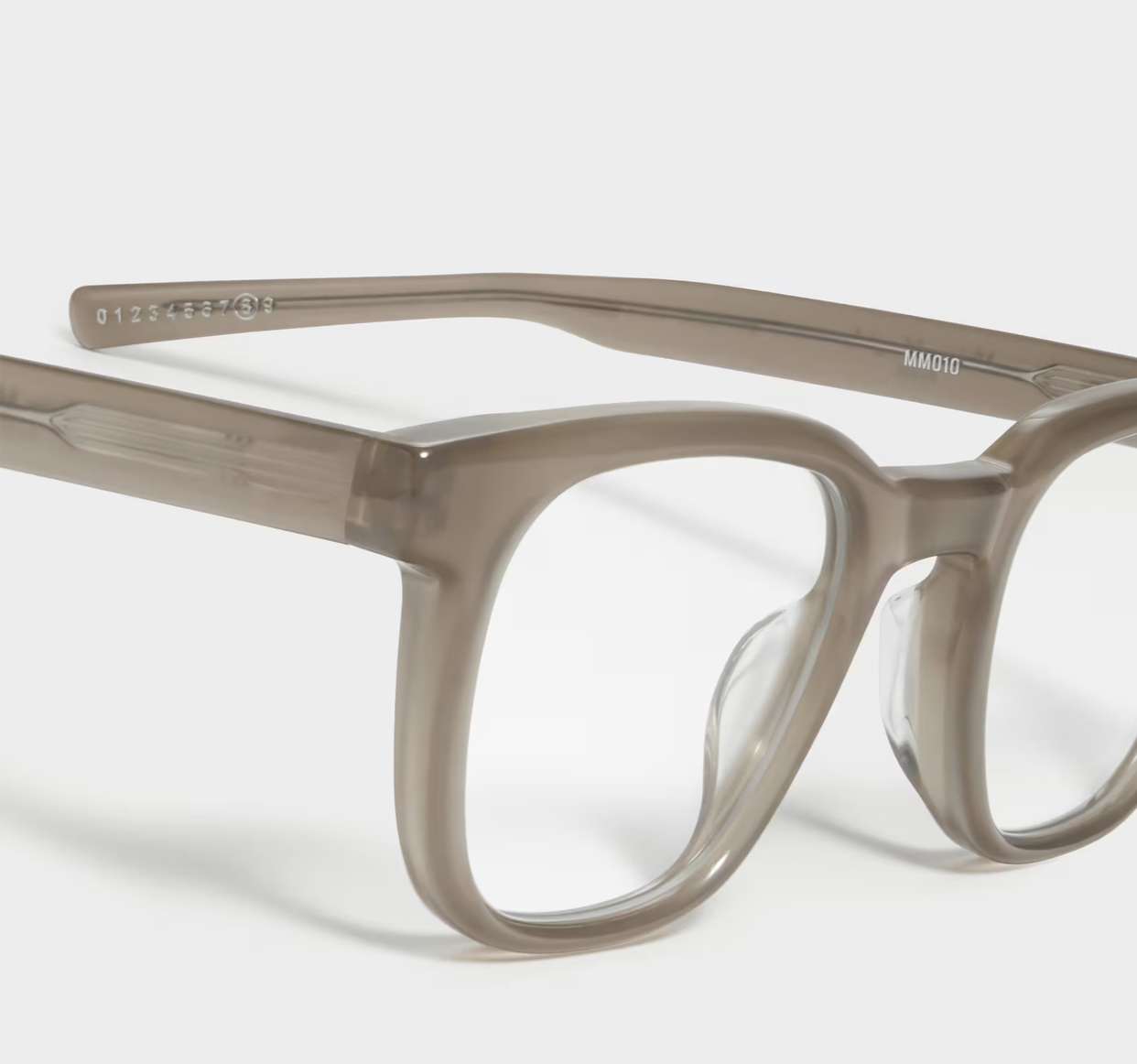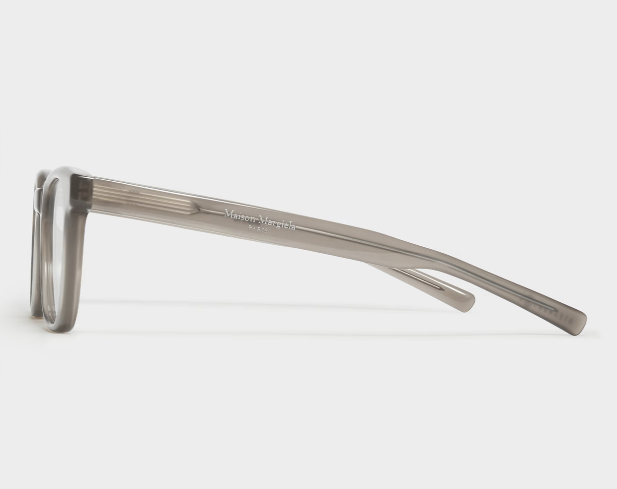 The MM010 BRC9 glasses feature a rectangular silhouette structured from subtle brown acetate. The left side is adorned with the Maison Margiela logo, and the tip of the inner left temple is embellished with the Maison Margiela's numeric logo with 8 encircled.