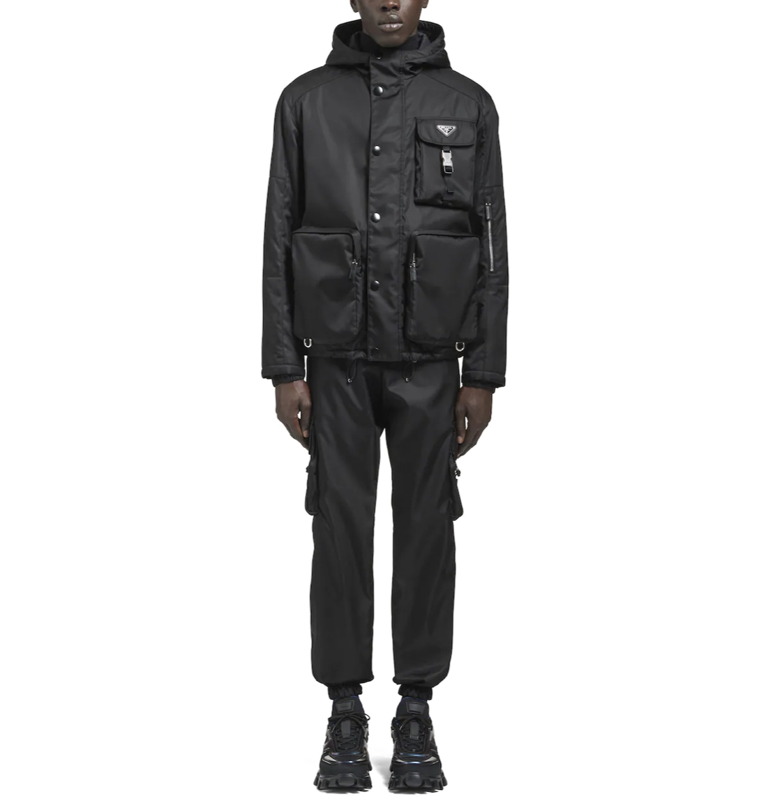 Description: -Regular fit -Hooded Collar -Straight sleeves -Zipper and button closure -Boxy zipper pockets -Straight cuff -Drop shoulder -Straight hem -Elasticized drawstring -Quilted recycled fabric lining -Enameled metal