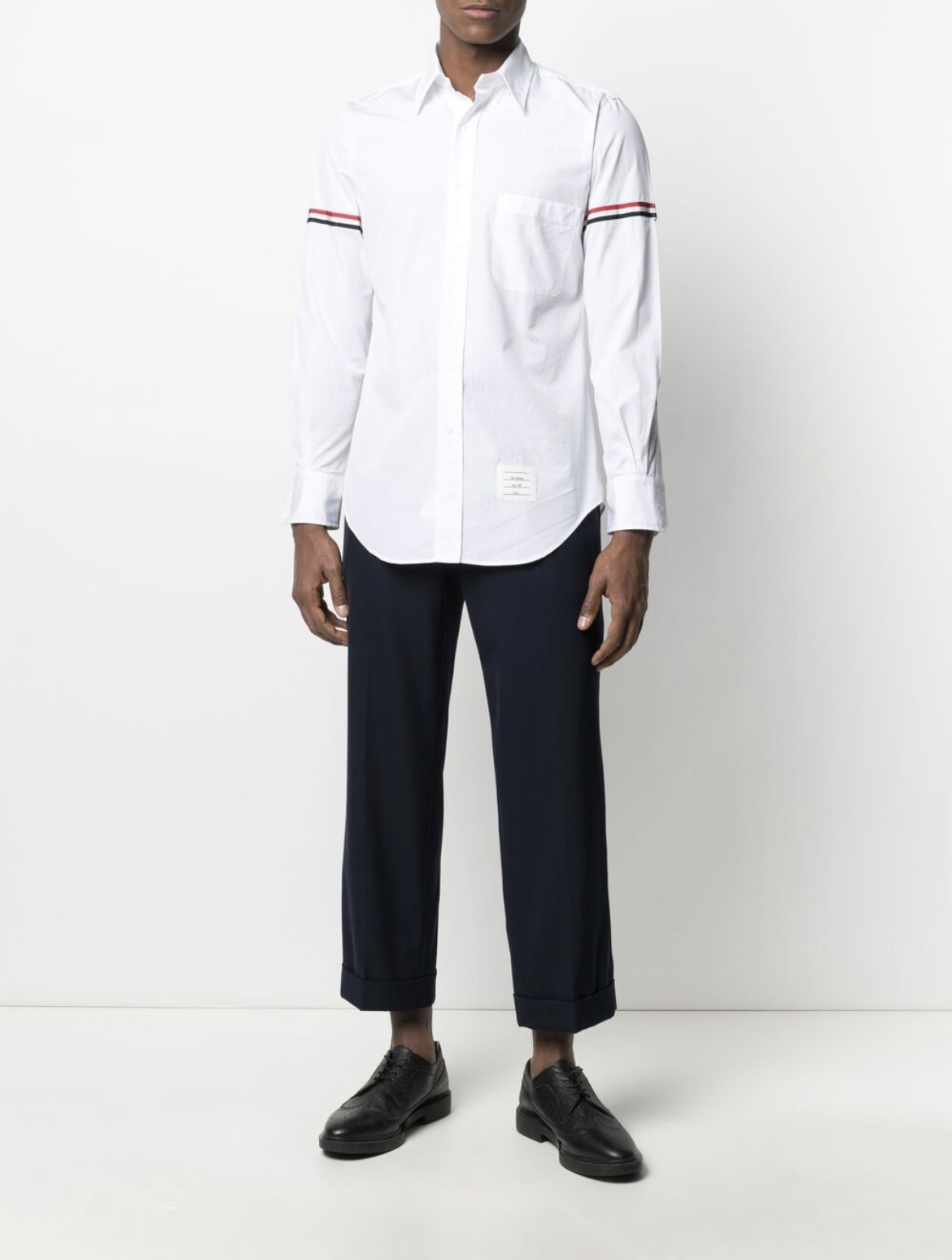 -buttoned cuff sleeves and RWB stripe
