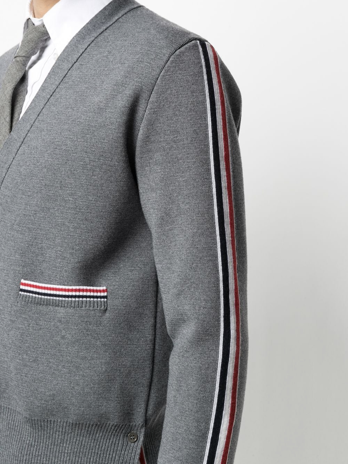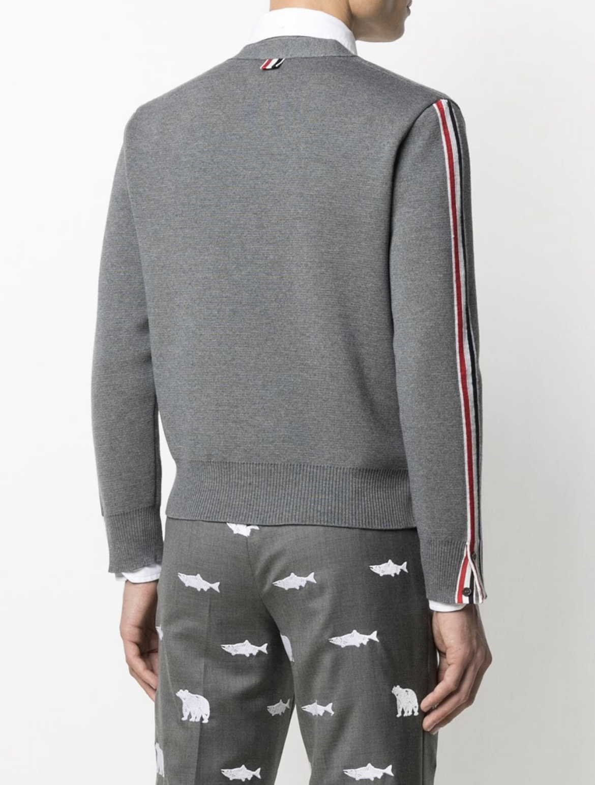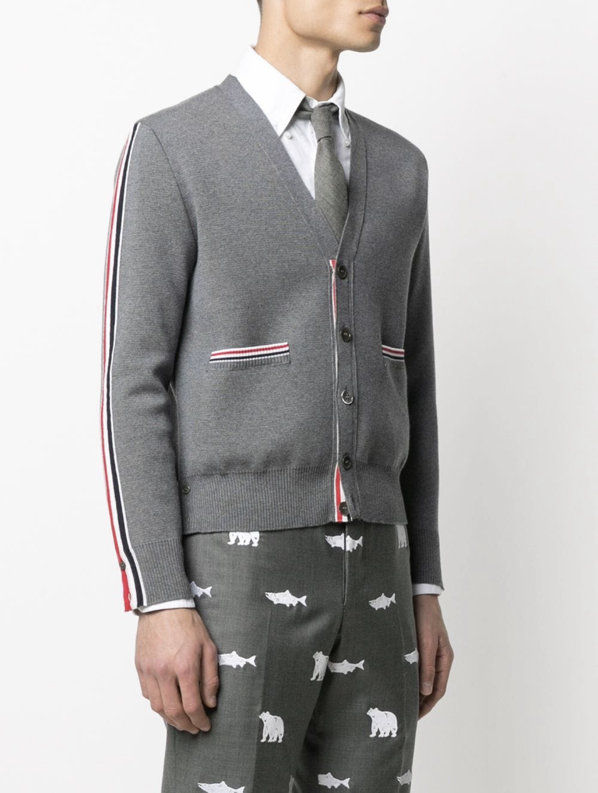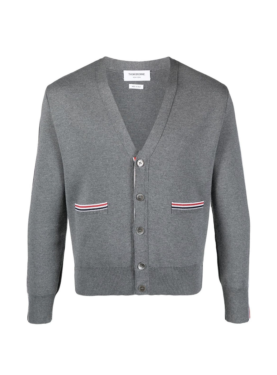 Description:-merino wool-stripe print -knitted construction -v-neck-front button fastening -long sleeves-ribbed knit edge Style id: MKC354AY1002, Color: grey